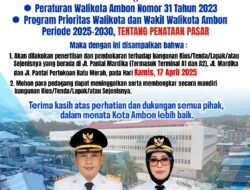 Ambon, Jendelakita.com – Dipastikan Pada 17 April 2025, Pemerintah Kota (Pemkot) Ambon akan melakukan pembongkaran terhadap lapak/tenda/kios para pedagang di Pasar Mardika, Kecamatan Sirimau.