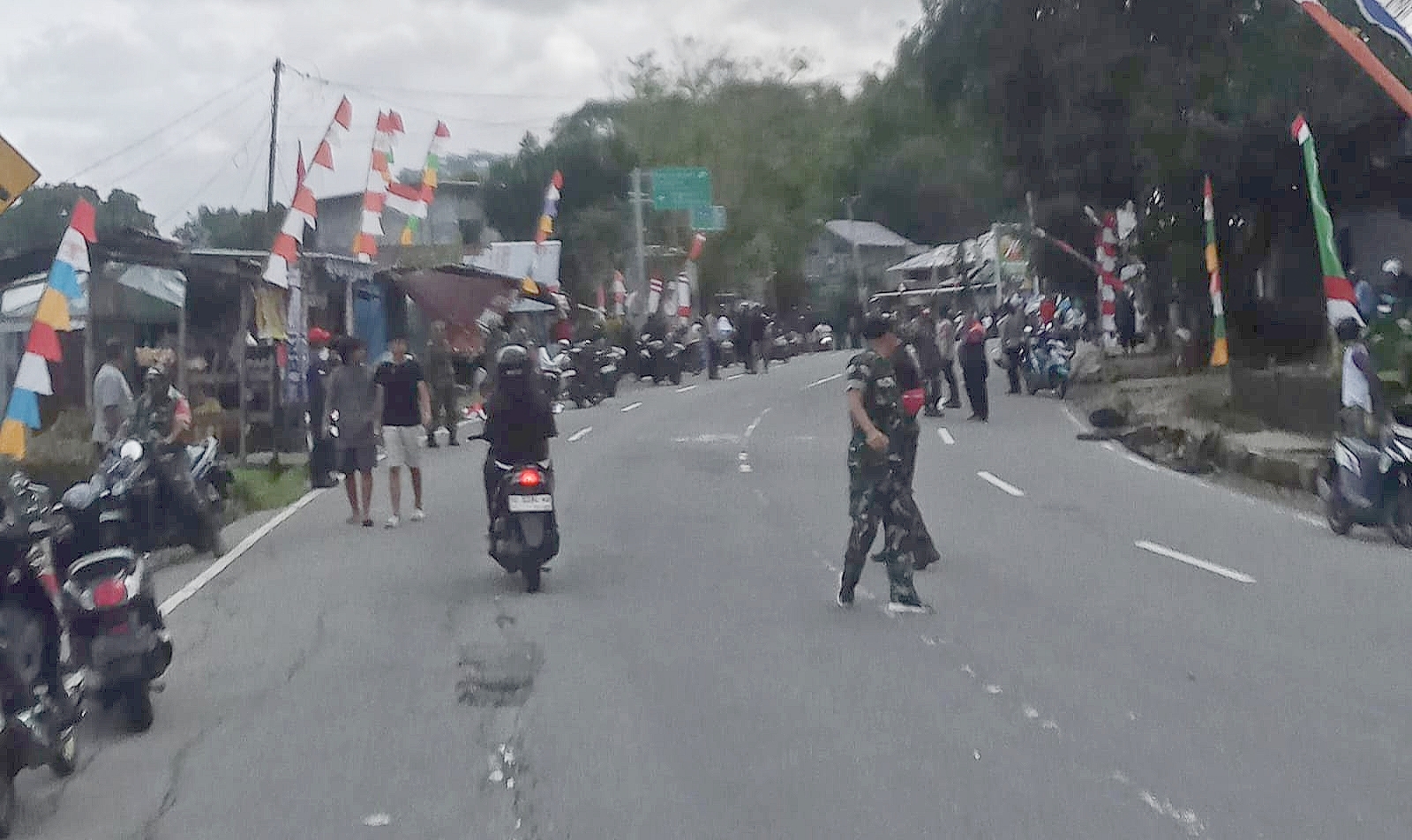 Akses jalan depan Kantor Desa Hunuth, lokasi di mana dua kelompok masa sempat berhadap-hadapan, sebelum kedatangan aparat