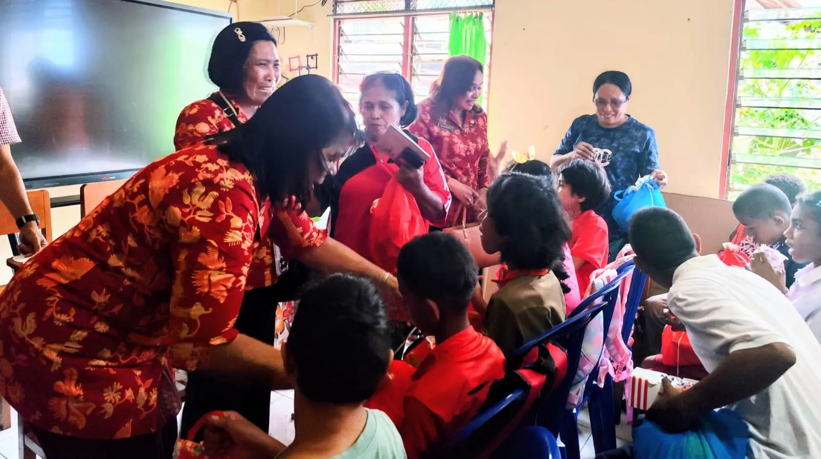 Pemberian bingkisan tali kasih dari DWP kota Ambon kepada para siswa SLB Liliani I, Jumat (14/11/2025). Kunjungan ke SLB merupakan salah satu rangkaian kegiatan dari perayaan HUT ke-26 DWP, yang jatuh pada 7 Desember 2025. Selain ke SLB Liliani I, kunjungan juga dilakukan ke SLB Batumerah.