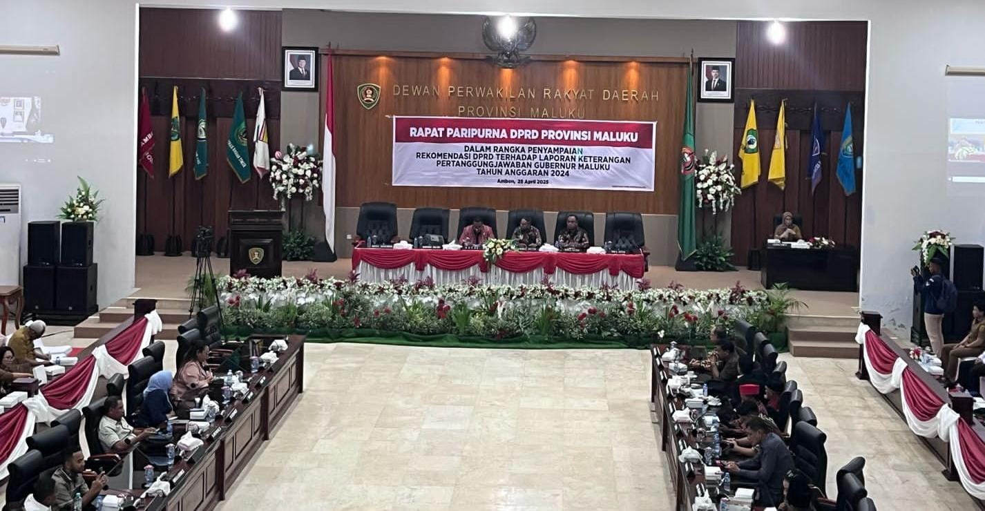 Ambon, Jendelakita.com – Dewan Perwakilan Rakyat Daerah (DPRD) Provinsi Maluku mengeluarkan Rekomendasi atas Laporan Keterangan Pertanggungjawaban (LKPJ) Gubernur Maluku tahun 2024, dalam Rapat Paripurna yang digelar di baileo rakyat Karang Panjang Ambon, Senin (28/4/2025).