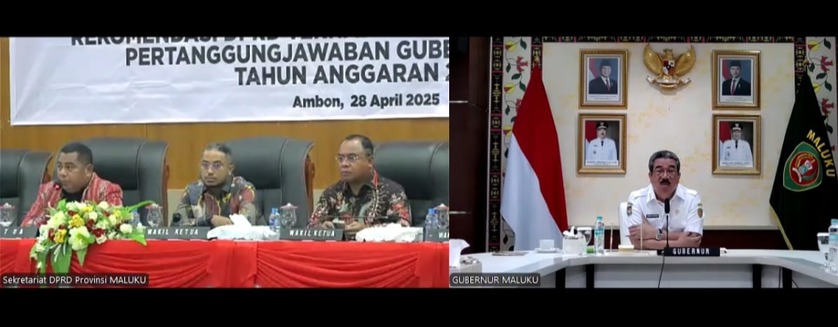 Ambon, Jendelakita.com – Hendrik Lewerissa mengikuti secara virtual jalannya rapat paripurna penyampaian rekomendasi Dewan Perwakilan Rakyat Daerah (DPRD) terhadap Laporan Keterangan Pertanggungjawaban (LKPJ) Gubernur Maluku Tahun Anggaran (TA) 2024, yang berlangsung di baileo rakyat Karang Panjang Ambon, Senin (28/4/2025).