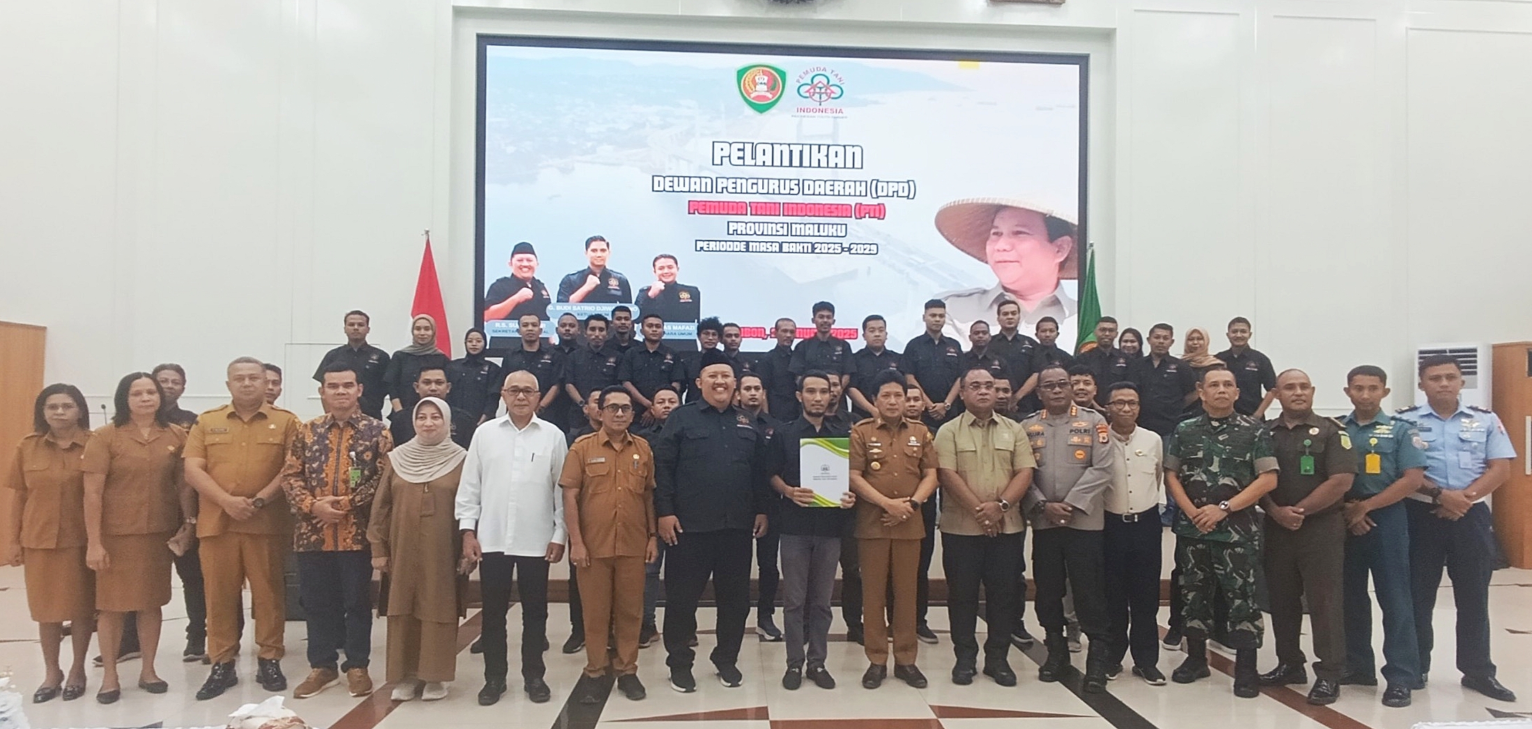 Pelantikan DPD PTI Provinsi Maluku dihadiri Forum Koordinasi Pimpinan Daerah (Forkopimda) tingkat provinsi, Sekjen Himpunan Kerukunan Tani Indonesia, perwakilan Badan Pangan Nasional, para pimpinan Organisasi Perangkat Daerah (OPD) lingkup Pemerintah Provinsi Maluku, stakeholder pertanian, dan pimpinan organisasi kepemudaan terkait. (RLA /Diskominfo Maluku)