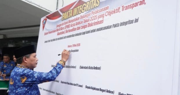 Wali Kota Bodewin turut menandatangani pakta integritas tersebut, sebagai bentuk dukungan terhadap pelaksanaan SPMB tahun 2025 tanpa praktik KKN.